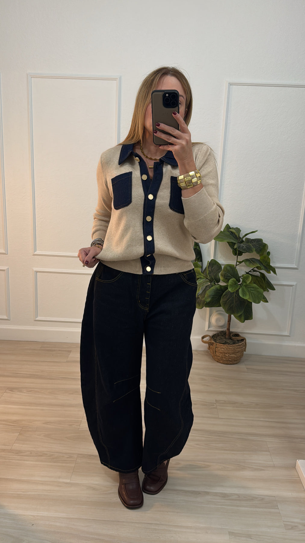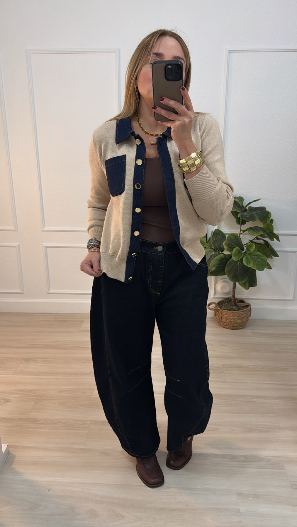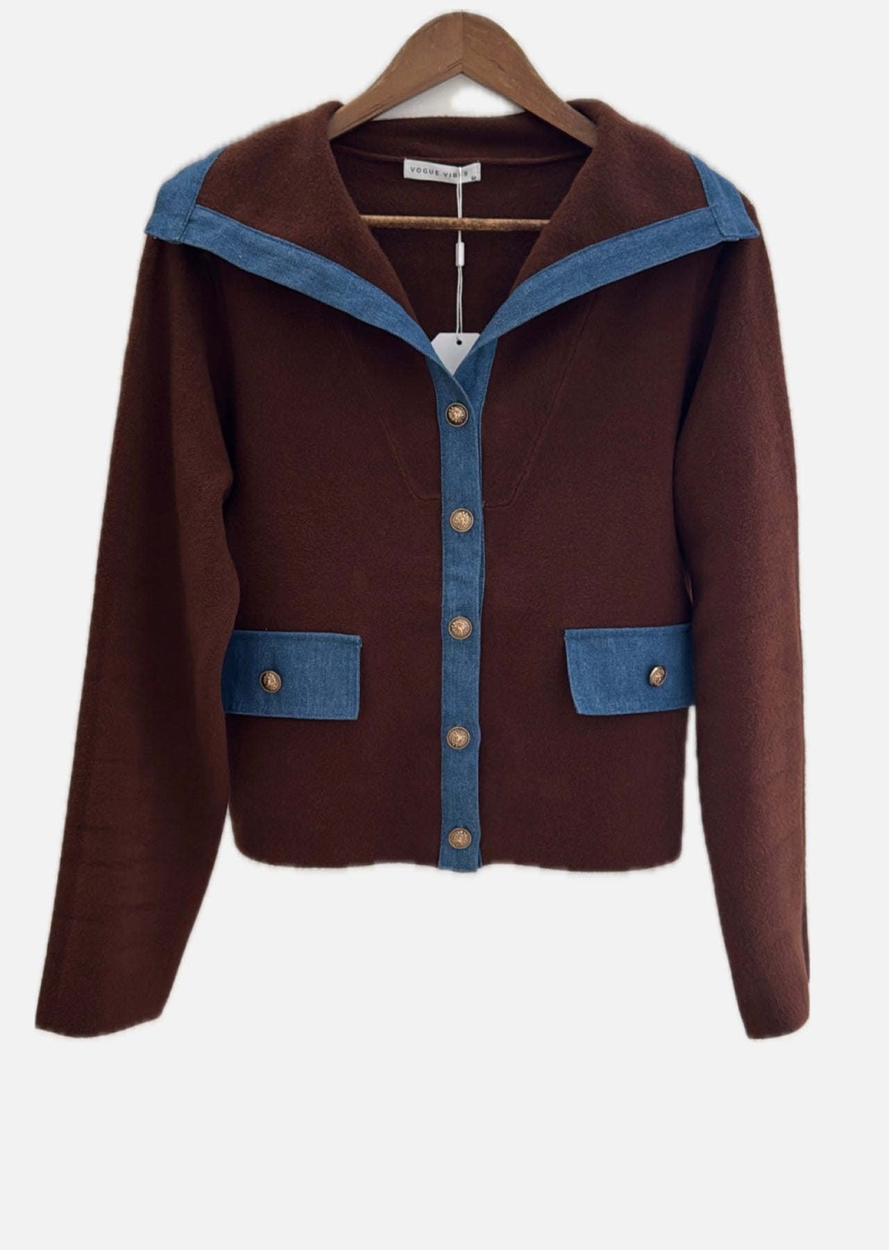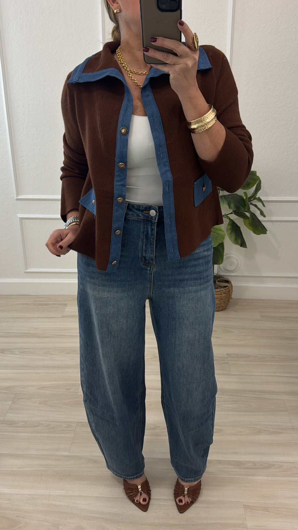 Brown/denim sweaters