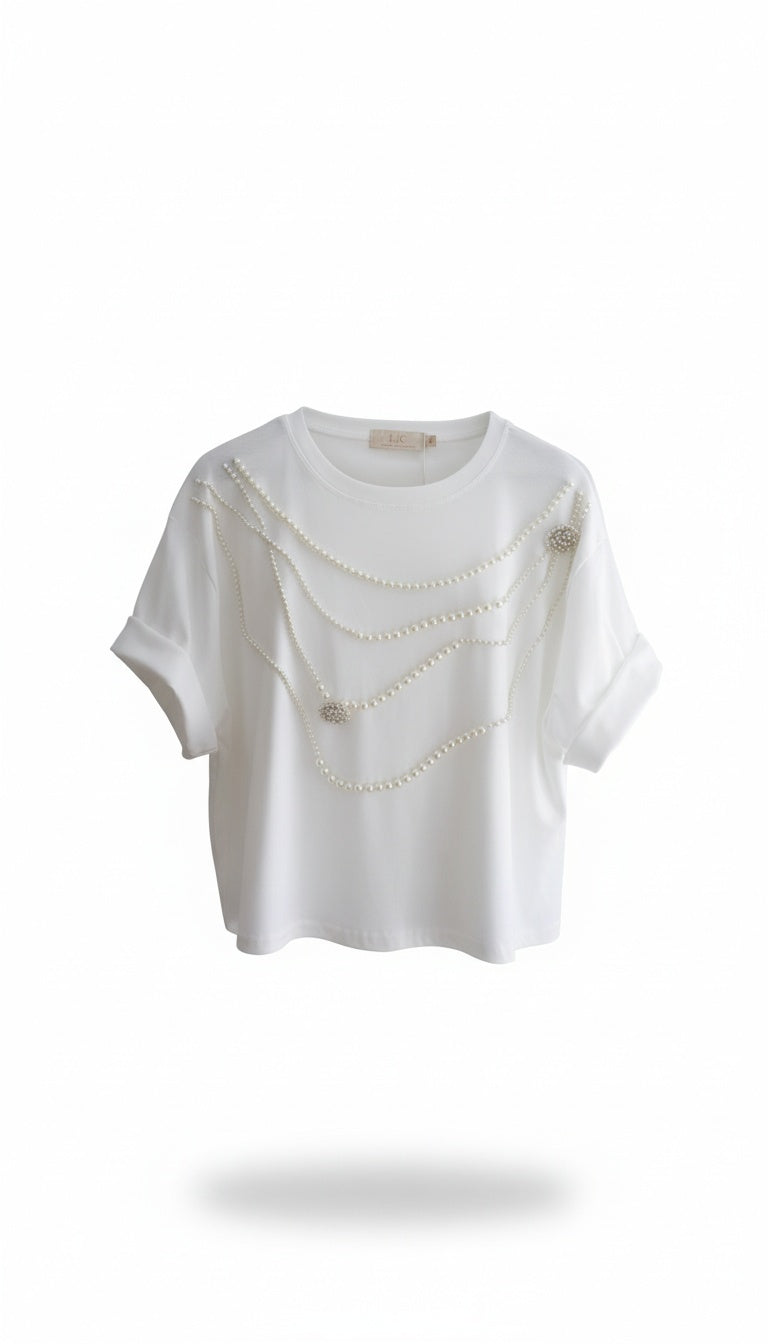 pearls/white t shirt